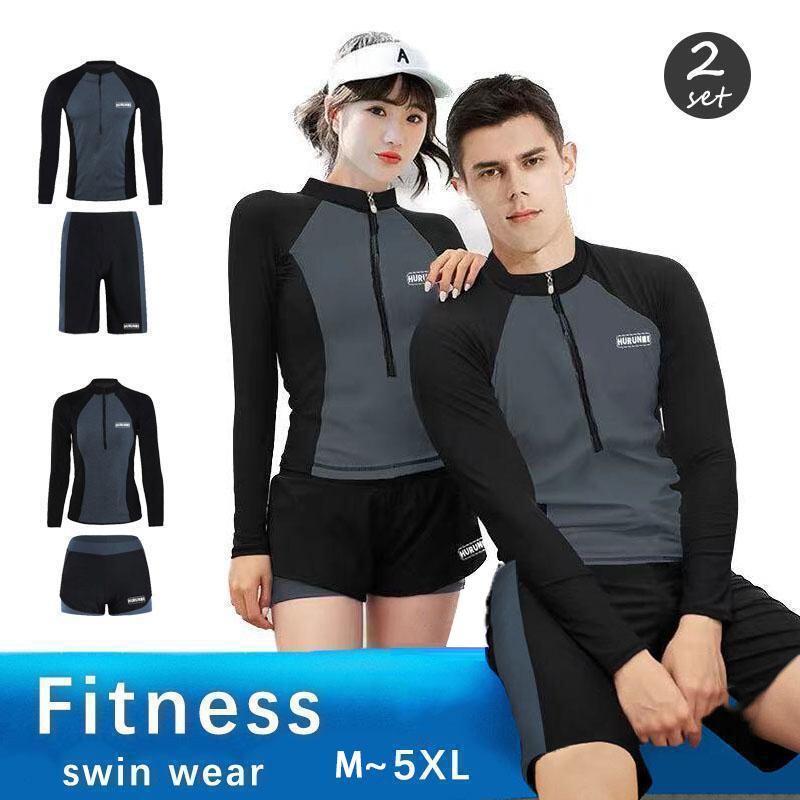 フィットネス水着レディース メンズ ラッシュガード セパレート 長袖 大きいサイズ 体型カバー めくれ防止 40代 50代 上下セット めくれ防止付き ジム 競泳
