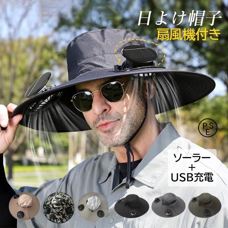 帽子 メンズ レディース UVカット 通気 速乾 熱中症対策 ひんやりキャップ ソーラーファン付き アウトドア 登山 釣り用 360度日除け 折りたたみ 携帯便利 通勤 | chibimaruya