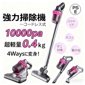 強力掃除機 コードレス式 軽量 4WAY 充電式 サイクロン 10000pa 静音 小型 紫外線殺菌 ダニ駆除 掃除器 吸引力 ハンディー クリーナー コンパクト 省エネ 掃除