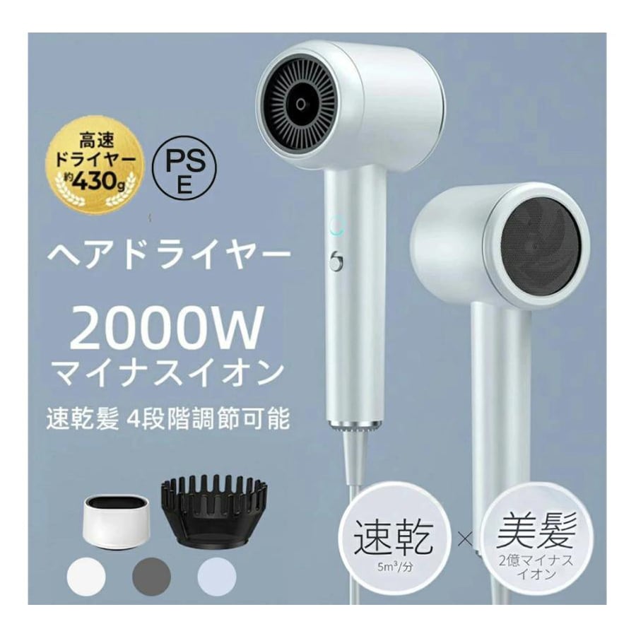 ドライヤー ヘアドライヤー 速乾 大風量 冷熱風 4段階調節 高級 2億マイナスイオン 高速 超軽量 美髪 静音 過熱保護 おしゃれ 安い 旅行 持ち運び便利