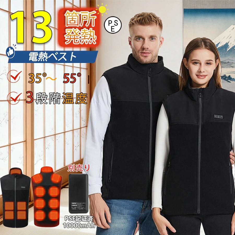 電熱ベスト バッテリー ヒーター保温 暖かい 防寒 13箇所発熱 前後独立 3段階調温 男女兼用 軽量 バイク 速暖 3段調整 通勤通学 洗える アウトドア