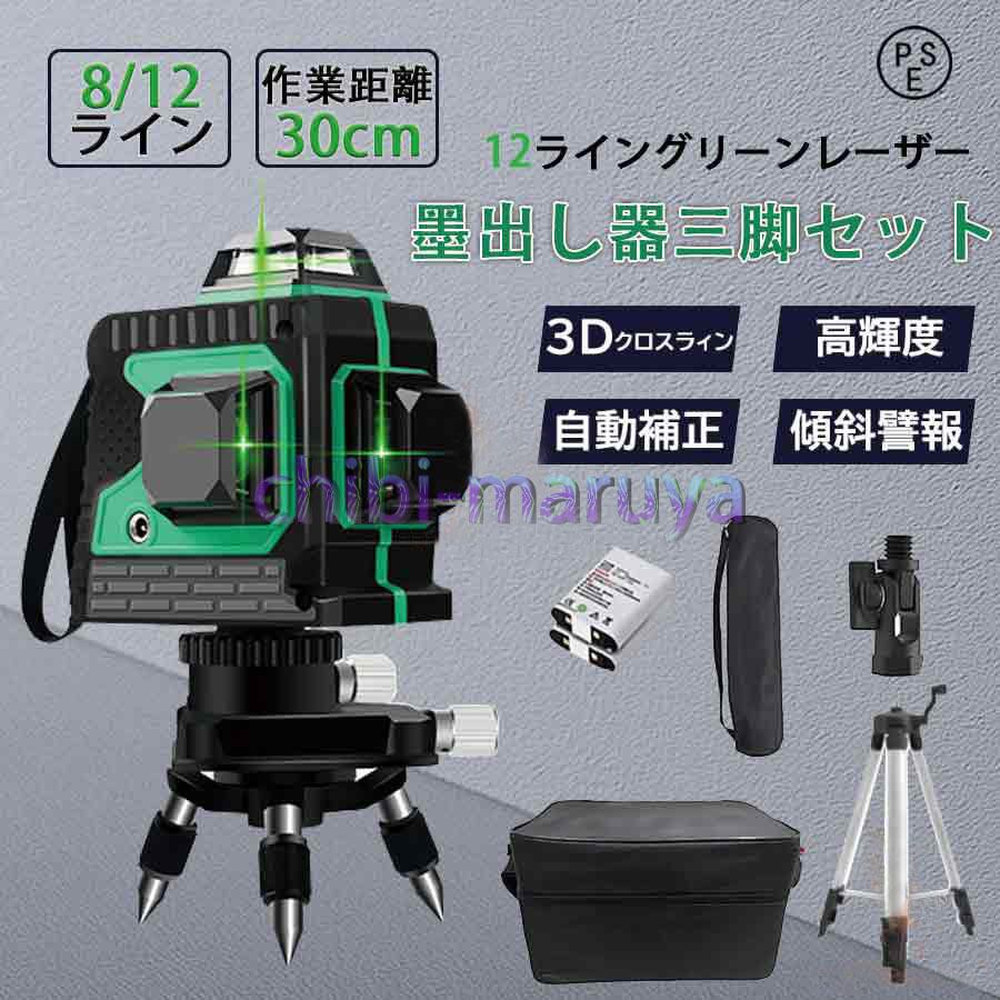 水平器 レーザー墨出し器 12ライン 8ライン 自動補正機能 グリーン 赤色 レーザー 墨出し器 三脚付 クロスライン 高輝度 高精度 360°4方向大矩照射モデル | chibimaruya